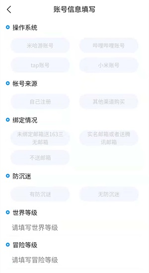 1.操作起来非常的简单,只需要选择游戏类型,输入账号信息即可将账号上架。