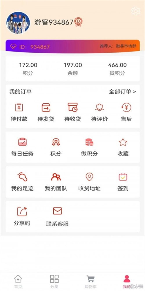 每天登录软件,还可以做任务,做任务可以获取微积分,积分可以兑换精美礼品,用户还可以查看自己的足迹,不用担心商品走丢,对喜欢的商品还可以直接加入购物车,并且用户还可以随时更改收货地址。