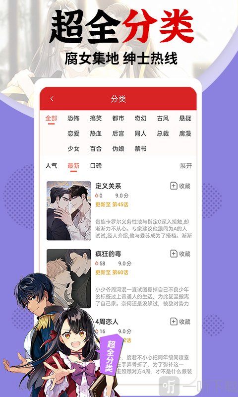 4.能够将自己喜欢的漫画在线关注,这样他们有更新的时候就会快速的提醒你。