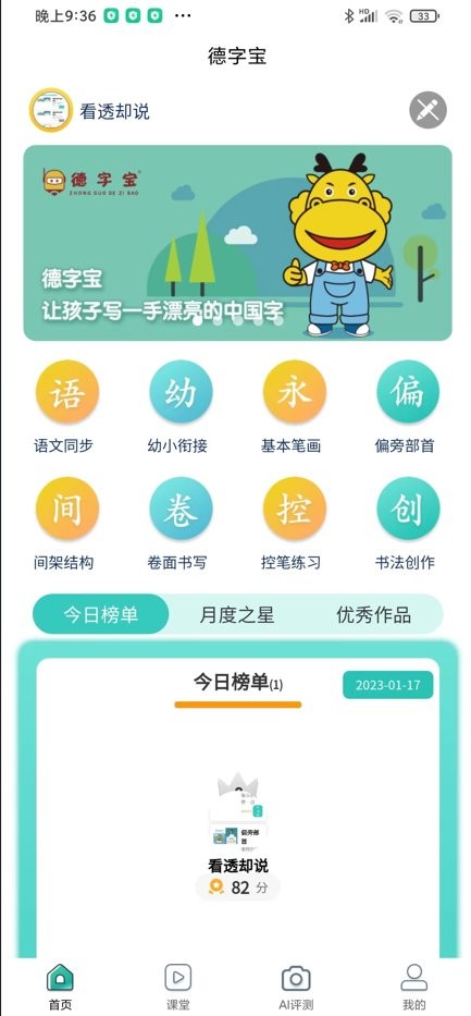 德字宝内还有强大的智能AI练习功能,跟上了潮流的趋势,还可以对孩子的笔迹进行评分,更好的激发了孩老师家长子的练习动力,让老师家长群体省心了不少。