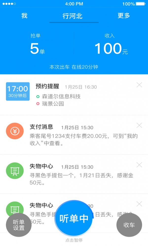 行河北司机端是一款专为司机打造的专车服务应用,可以快速抢单,提升接客效率,帮助司机车主提升收入。该软件采用符合国家规范的计时计程方式进行计价,同时具有生物技术实现驾驶员身份识别的功能,为乘客提供方便、快捷、透明的出行服务。乘客可以自由选择坐车人数,给司机捎话设置个性化留言,同时支持实时出发和预约时间出发。目前只有出租车一个版本,后续还会接入计价器计费。