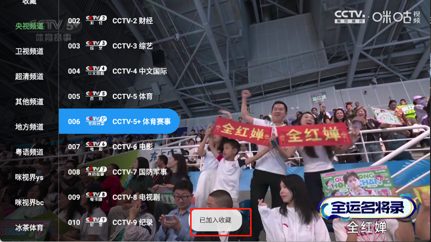 3.收藏喜爱的频道,在左上角“收藏”中快速访问。