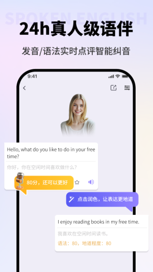 1. 智能英语对话练习,AI扮演对话伙伴,模拟日常对话与情景交流,提高口语实际运用能力。