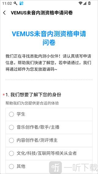 2.邀请码的获取方式可以在其官方平台上进行内测资格问卷答题,完成通过后即可获取到,然后填写进去就可以使用它进行AI音乐创作了。