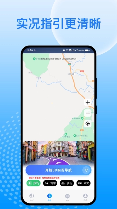 1.高清街景地图直观呈现周边环境,快速确认当前位置与前进方向。