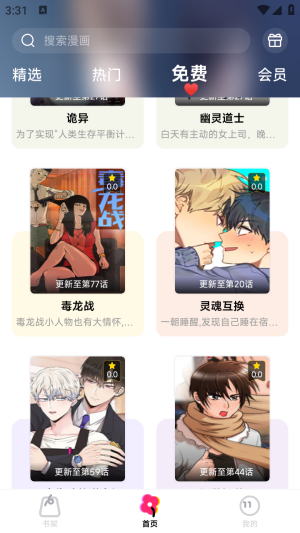3、书架管理功能支持快速切换不同连载漫画,让你高效组织和管理个人阅读内容。