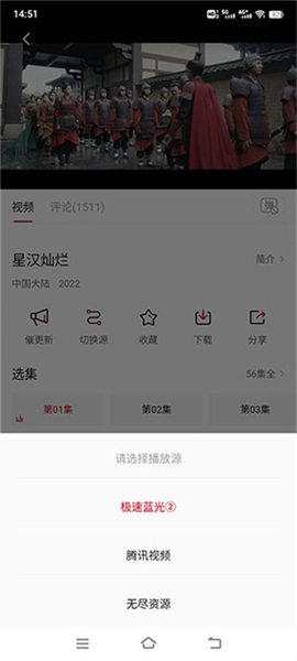 3.点击播放源还可以切换切换源,一个线路没有更新请切换另一条线路观看。