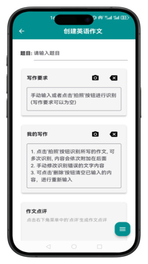 1. 多场景作文生成,覆盖考试作文、日常练笔、书信、看图写话等类型,例如输入“我的周末”即可生成完整范文供参考。