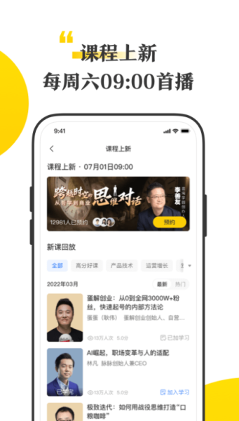 2.内置了许多优秀的直播课程,用户可以随时随地点开这些课程来进行浏览。