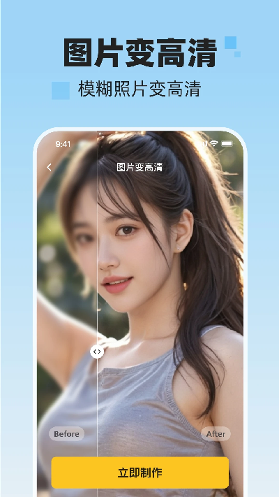 1.AI高清功能,可以轻松一键把模糊的照片变得更加清晰,再也不用担心老照片或者是像素低的图片太模糊,直接使用这个功能就能够修复细节纹理,提升照片的质感。