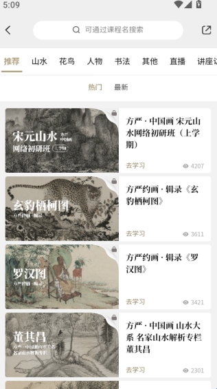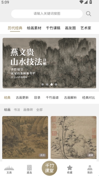千竹书院是一款专门提供中国传统文化资源阅览的软件,汇聚了非常丰富多样的中国传统文化资源,为用户提供更加便利、更加全面的中国画的研学服务,收集了丰富多样的经典绘画作品,包括历朝历代的经典名画,人物画,山水画、花鸟画等各种题材应有尽有,设置了历代经典、绘画素材、千竹课稿、画友圈、艺术家等不同的专区,让用户能够轻松的找到自己想要看的作品。