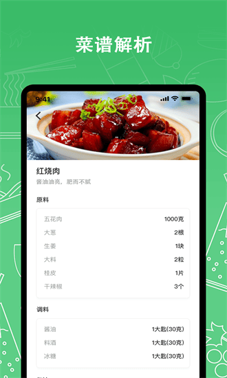 1.提供了详细的菜谱解析,每道菜从原料到调料到用量以及做法都解析的非常详细,手把手的教你做菜。