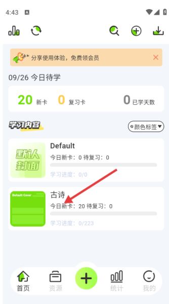 2、需要利用卡片记忆这个功能时,我们直接点击即可。