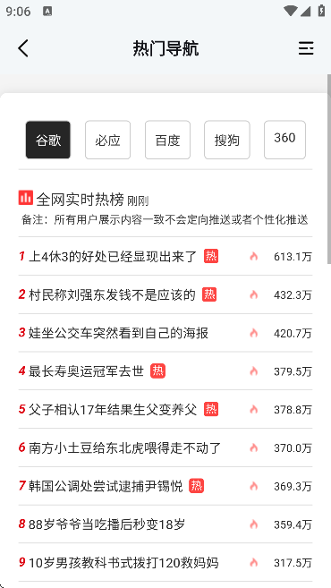 3、例如全网一键搜索。输入关键词然后点击搜索按钮,ACC浏览器就会同时向十个搜索引擎发送搜索请求,并且通过列表形式或者网格形式展示给用户。