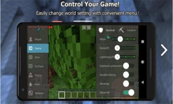 MCPE Master专为喜爱玩我的世界游戏的用户开发,你可以将游戏内的各项按钮全部集成到悬浮窗当中,只需轻轻点击悬浮窗图标,即可将游戏里的各项功能图标全部解锁出来,软件经过了完美的汉化,在使用的过程中不会遇到任何语言的障碍,能大幅降低软件的使用门槛。