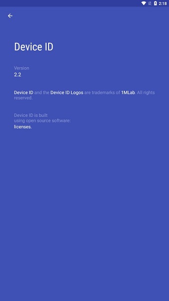 Device ID是一款专门帮助安卓手机用户查询id序号的辅助工具软件,使用这款软件,用户可以轻松的对安卓手机设备的各种id信息进行轻松的查询,包括蓝牙配对MAC地址、硬件名称、SIM卡序列号等,安装包的体积非常小,不会影响手机的运行,界面的设计清新简洁,各项功能一目了然,操作起来方便快捷,让用户能够轻松地对设备信息进行查询。