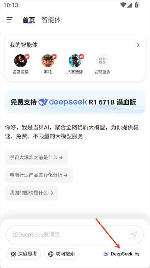 3、在首页,点击右下角的语言大模型名称
