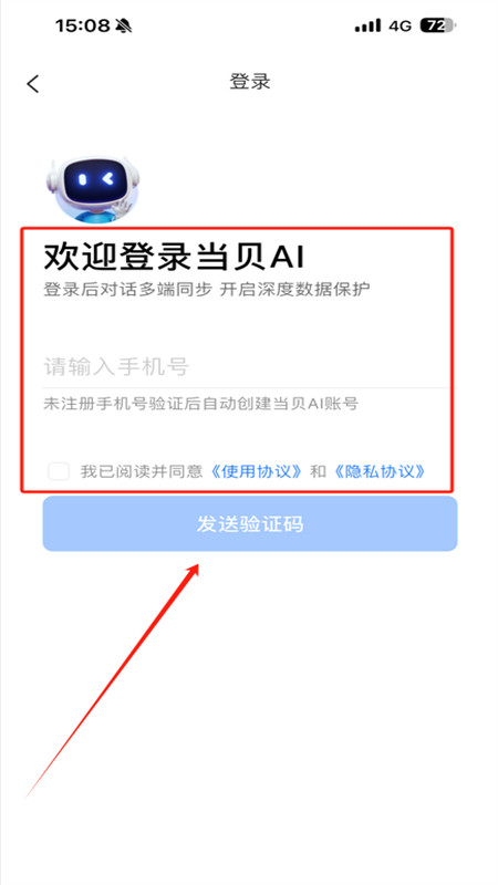 2、输入手机号,获取验证码后即可快速注册登录