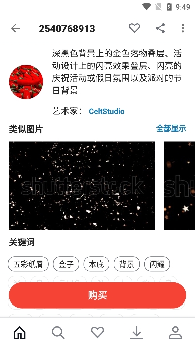 shutterstock是一款面向手机端的创意素材软件,用户可以在搜索筛选出自己需要的图片素材,将这些素材全部导入到手机系统当中,方便用户在后期对图片编辑时,插入这些素材内容,软件里的素材资源十分的丰富,无论哪种类型的资源都可以直接找到,整个界面都是经过中文汉化的,能降低这款软件的使用难度。