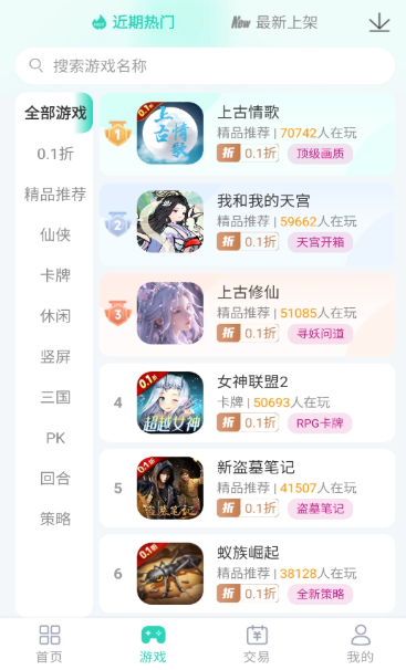 3.在游戏栏目中可以看到详细的游戏分类,用户也可以在搜索框中输入游戏的关键词进行游戏的查找。