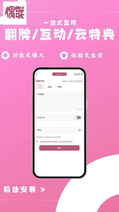 偶联是一款由天津偶联科技有限公司开发的专门提供偶像文化的软件,面向手机端用户所设置,主打轻量化体验和清晰的信息组织方式,用户在日常通勤学习的间隙,或者是工作碎片时间里,可以随时打开,来查看关于自己喜欢的偶像的一切信息,为偶像和粉丝建立一个线上连接的纽带,充分实现双向奔赴,给粉丝们带来全新的优质的互动体验。