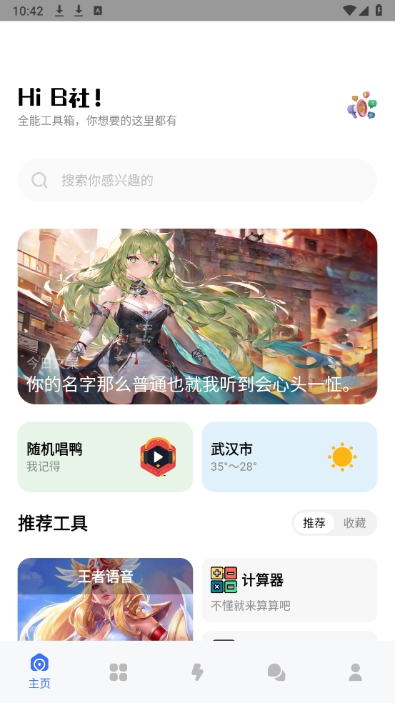 2、进入到首页,汇集了海量的工具,包括指南针、计算器以及抖音解析等。