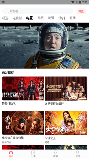 3.用户还能在软件里点击分类按钮,查看不同类别的影视资源。