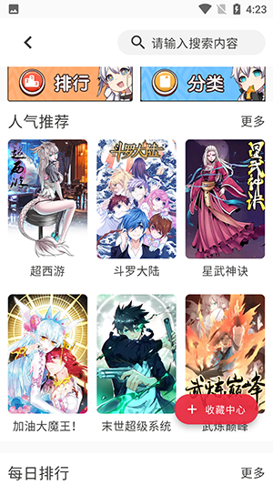 1.用户可以点击软件里的排名系统,查看当下热度最高的漫画资源。