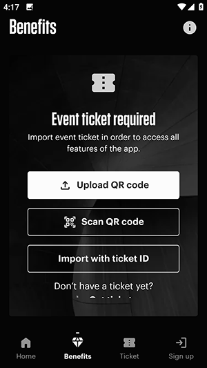 2、benefits页面中可以上传音乐节门票以领取伴手礼。