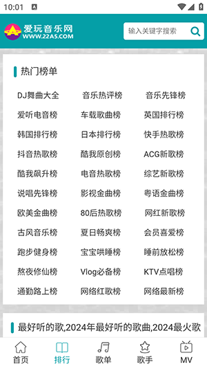 2.提供了大量的热门榜单,包括dj舞曲,音乐热评榜,抖音热歌榜,说唱先锋榜,古风音乐榜,欧美金曲榜等,用户可以根据不同的热门榜单来搜索相应的音乐。
