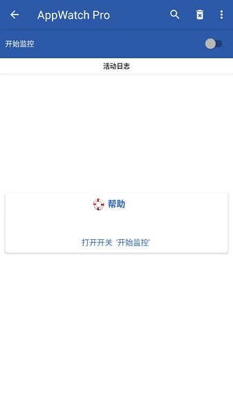 1.下载安装完成软件之后,打开软件之后,点击屏幕右上角的开始监控的这个开关,这就是等于将软件的侦查模式开启了,他将做好准备,随时去追踪那些可能会弹出的广告应用。