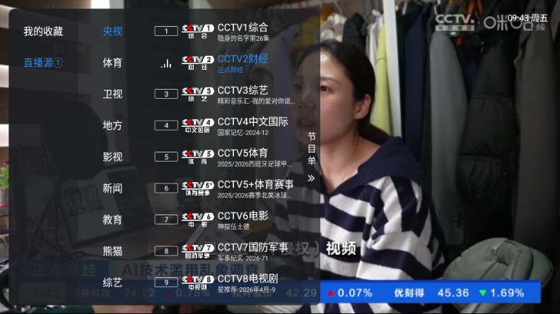 2、进入软件后,点击左边屏幕就可以更换节目。