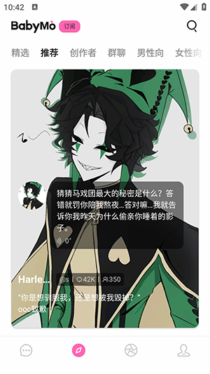 1、在软件首页提供了多种类型的AI角色可以直接点击互动。