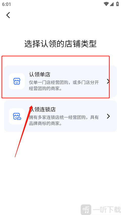 2、然后选择认领的店铺类型。