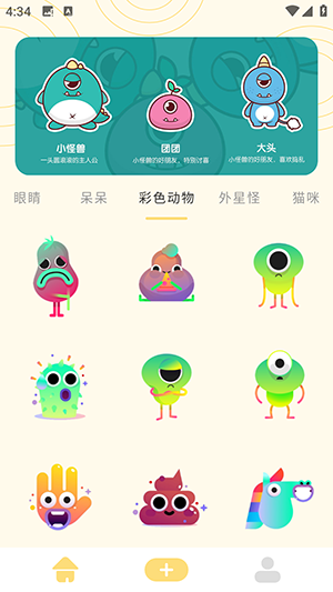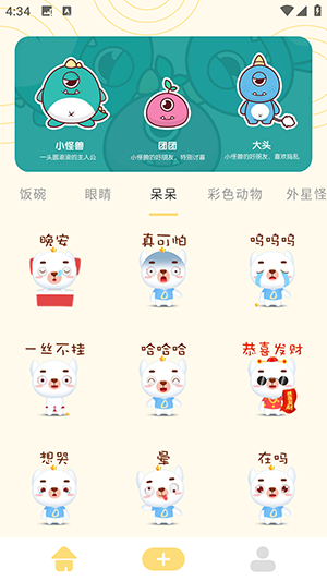 1、打开应用后点击中间的“加号”入口,就可以进入表情包创作页面,这一步主要是开始制作的起点。