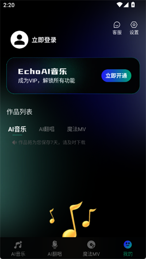 EchoAI一键成曲是一款轻量化AI音乐创作工具,集作曲、填词、翻唱、MV生成于一体,只需输入文字灵感即可快速生成完整歌曲,支持自定义风格、声线与画面,零基础也能轻松做出专属音乐作品。