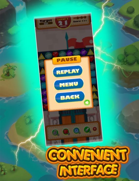 3.消除挑战,解锁所有道具,完善连击效果,并收集宝石以获得大量财富。
