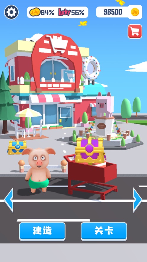 手推车漂移是一款非常考验玩家反应能力的游戏,具有卡通可爱的画面,灵活操控角色的移动并且推着小推车在道路上前进,收集更多的商品获得更高的分数,游戏的节奏会逐渐加快,带给玩家无限畅快解压的感觉,每一关都是非常具有趣味性的。
