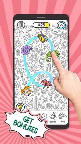 现形游戏是一款有趣的寻找指定物品的休闲益智类手机游戏,这款游戏的画面风格看上去很有个性,就像是美国漫画一般的绘画风格让游戏看上去很别致,具有独特的味道,这款游戏的玩法很简单,在复杂的场景图片中寻找指定的物品,考验玩家的眼力!