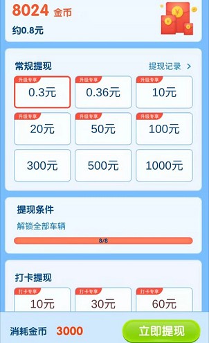 1.豪华轿车等着您解锁,赢得更多金币,并获得大量的福利奖励。