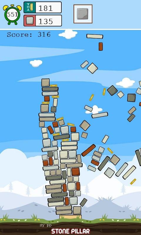 2.与俄罗斯方块的玩法相似,不断堆积掉落的石头以打造终极塔楼;