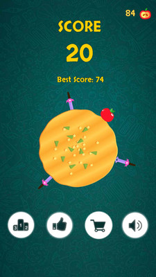 2.有多种玩法和许多有趣的水果或面包让您挑战,继续使用投掷刀尽可能多地插入投掷刀。