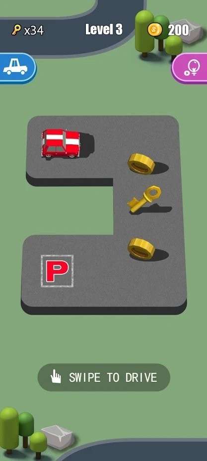 2.停车之王parkking操作十分简单,用拇指划线即可,引导车辆正确停到终点就算通关。
