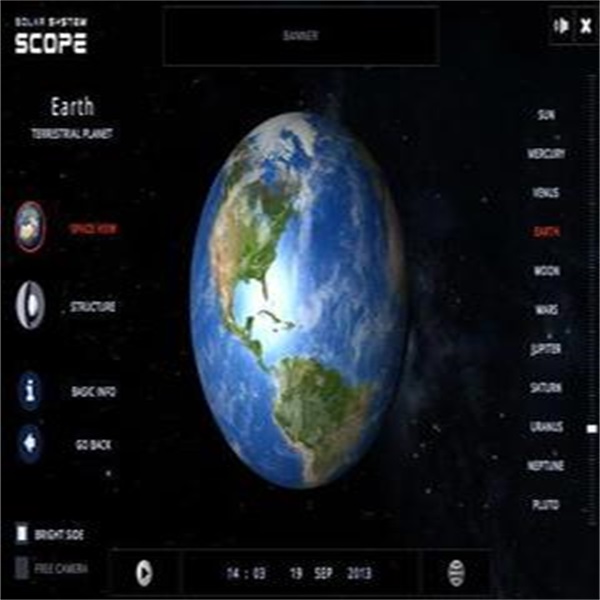 太阳系范围是一款新鲜有趣的太阳系模拟游戏,游戏将广阔无垠的太阳系全景以逼真的三维立体画面展现在玩家面前,让玩家真实的感受到整个太阳系日月星辰的日夜变化,可以极大的开阔玩家的眼界,广大喜欢天文学的玩家可以在这款游戏中大饱眼福。