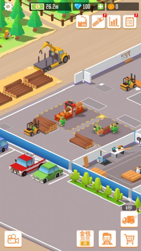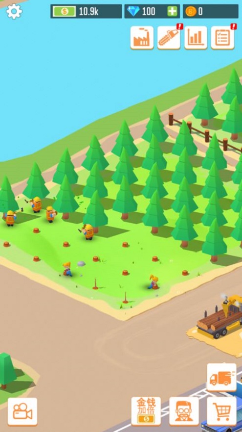 我在林场挣大钱是一款采用经营模拟玩法的游戏,在这里经营好属于自己的林场,并且砍伐更多的树木进行出售,赚取收益之后就可以用来扩大自己的林场规模,操作方式简单易上手,小孩子也可以玩耍,在这里能够展现自己的策略能力。