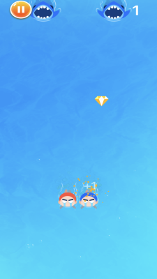 2.当角色触摸钻石时,得分为+1,并且在触摸鲨鱼时游戏结束。