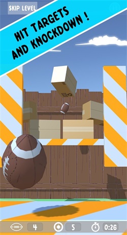 它是一款很棒且休闲的益智类游戏击倒目标,这个游戏的画风很清新,游戏操作不难,上手很快,你能很快速的爱上这个游戏,你要控制游戏中的橄榄球抛出去的位置,如果你能击中目标的话就算赢了,不过还是很考验玩家的眼力和手速的。