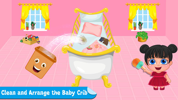 1.女婴打扫房间的房间清洁模拟器,婴儿衣服的洗衣,洗涤,干洗和熨烫。