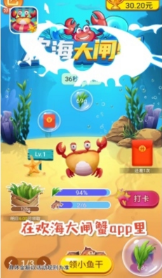 1.休闲益智游戏,在游戏中,用户每天用自己的食物喂食小螃蟹,并每天喂食以促进螃蟹的生长并使它们变得更丰富。