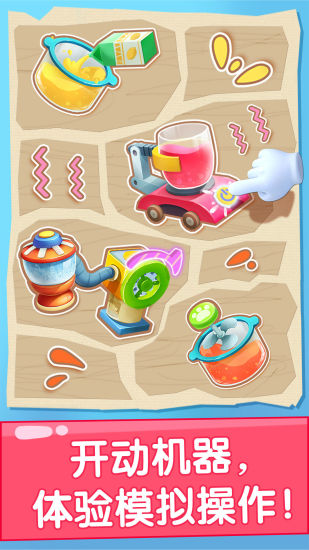 3、可以操作不同功能的机器,体验制作的乐趣,用不同的配件装饰果汁杯,丰富玩法。
